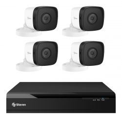 Sistema de seguridad CCTV con DVR pentahíbrido de 4 canales BNC + 2 IPC, 4 cámaras, disco duro y monitoreo por Internet